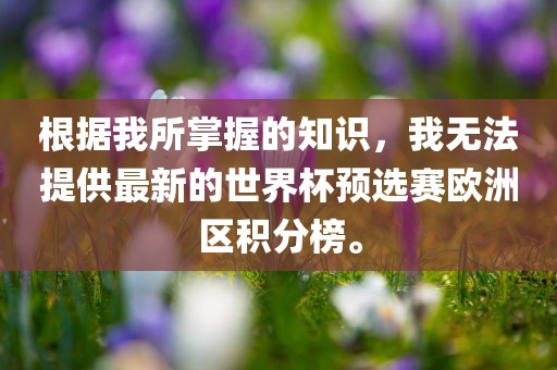 摘要:由于我所掌握的知识有限,无法提供最新的世界杯预选赛欧洲区积分榜。建议关注官方渠道或体育新闻以获取最新、最准确的积分榜信息。