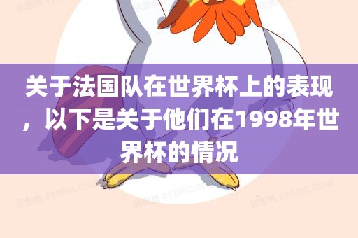 关于法国队在世界杯上的表现,以下是关于他们在1998年世界杯的情况