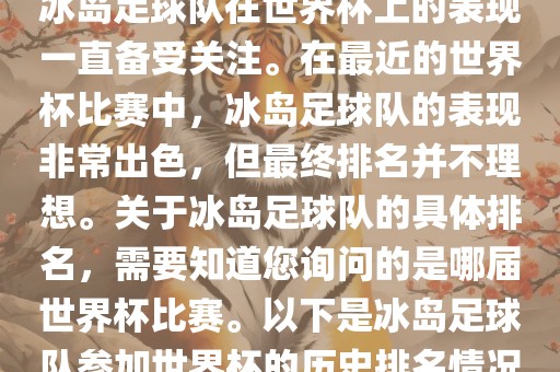 冰岛足球队在世界杯上的表现引人关注。尽管在最近的世界杯比赛中表现出色,但最终排名并不理想。关于其历史排名,需知道具体是哪届世界杯比赛。冰岛足球队在世界杯赛场上留下了深刻的足迹。