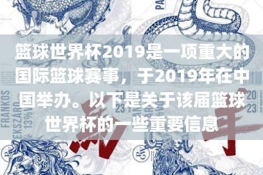 篮球世界杯2019是一项重大的国际篮球赛事,于2019年在中国举办。以下是关于该届篮球世界杯的一些重要信息
