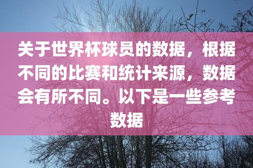 关于世界杯球员的数据,根据不同的比赛和统计来源,数据会有所不同。以下是一些参考数据