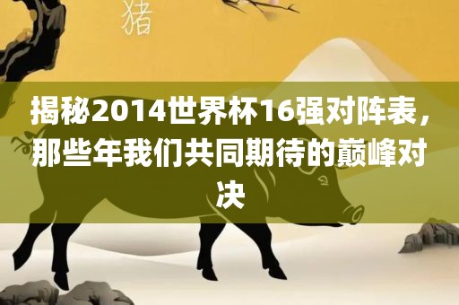 摘要:本文将为你揭秘2014年世界杯足球赛的16强对阵表,带你回顾那些年我们共同期待的巅峰对决。文章将详细介绍各组球队之间的激烈比拼,以及那些令人热血沸腾的瞬间。重温那些经典战役,让我们再次感受足球的魅力。