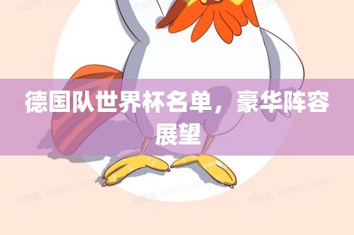 随着世界杯的日益临近,全球球迷的目光都聚焦在各大参赛国的队伍上,作为历史上有名的足球强国,德国队的每一届世界杯名单都备受关注,今年,德国队的世界杯名单更是备受期待,球迷们纷纷猜测谁将成为这支豪华队伍的一员,我们将一起探讨德国队世界杯名单的相关情况。